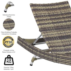 ESPECIFICACOES TECNICAS: Espreguicadeira Bona: - Altura: 30 cm - Largura: 68 cm - Profundidade: 202 cm - Suporta ate 250 kg - Com Regulagem