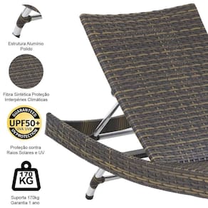 ESPECIFICACOES TECNICAS: Espreguicadeira Bona: - Altura: 30 cm - Largura: 68 cm - Profundidade: 202 cm - Suporta ate 250 kg - Com Regulagem