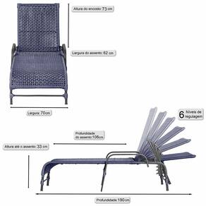 3 Espreguiçadeira Reclinável Trama - Azul
