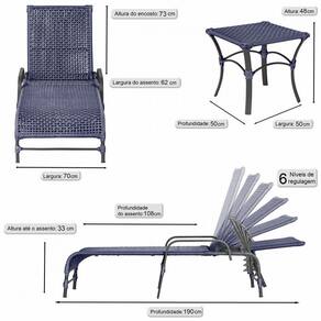 3 Espreguiçadeiras Catar 3 Mesas Garden Corda Náutica Trama Azul