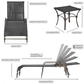 3 Espreguiçadeiras Catar 3 Mesas Garden Corda Náutica Trama Preto