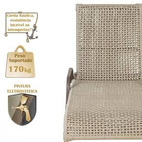Produto conhecido como: Espreguicadeira reclinavel, Espreguicadeira em aluminio, Espreguicadeira com encosto ajustavel, Espreguicadeira para area externa, Espreguicadeira para piscina, Espreguicadeira resistente ao tempo, Espreguicadeira moderna, Espreguicadeira confortavel, Moveis para area externa, Moveis de aluminio para jardim, Corda nautica para moveis, Espreguicadeira leve e duravel, Design sofisticado para areas externas, Decoracao para varanda e piscina, Espreguicadeira resistente ao sol e chuva