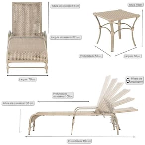 3 Espreguiçadeiras Catar 3 Mesas Garden Corda Náutica Trama Rami
