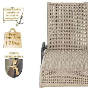 Produto conhecido como: Espreguicadeira reclinavel, Espreguicadeira em aluminio, Espreguicadeira com encosto ajustavel, Espreguicadeira para area externa, Espreguicadeira para piscina, Espreguicadeira resistente ao tempo, Espreguicadeira moderna, Espreguicadeira confortavel, Moveis para area externa, Moveis de aluminio para jardim, Corda nautica para moveis, Espreguicadeira leve e duravel, Design sofisticado para areas externas, Decoracao para varanda e piscina, Espreguicadeira resistente ao sol e chuva