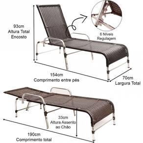Dimensões do Produto: Espreguiçadeira Catar: Altura: 37 cm Largura: 62 cm Profundidade: 195 cm Suporta até 200 kg Com regulagem
