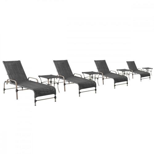 3 Espreguiçadeiras Catar e 3 Mesas Trama - Preto