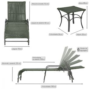 3 Espreguiçadeiras Catar e 3 Mesas Trama - Verde Musgo