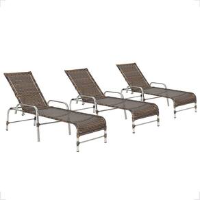 3 Espreguiçadeiras Reclinável Catar, Alumínio Polido E Fibra Argila