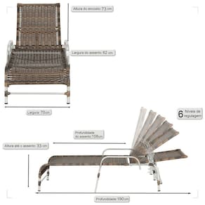 Produto conhecido como: Espreguicadeira reclinavel, Espreguicadeira em aluminio, Espreguicadeira com encosto ajustavel, Espreguicadeira para area externa, Espreguicadeira para piscina, Espreguicadeira resistente ao tempo, Espreguicadeira moderna, Espreguicadeira confortavel, Moveis para area externa, Moveis de aluminio para jardim, fibra sintetica para moveis, Espreguicadeira leve e duravel, Design sofisticado para areas externas, Decoracao para varanda e piscina, Espreguicadeira resistente ao sol e chuva