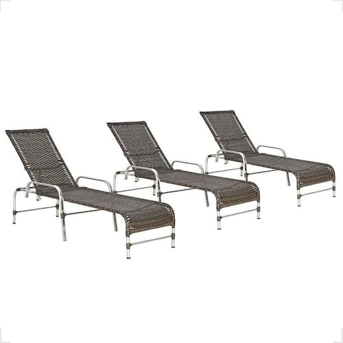 3 Espreguiçadeiras Reclinável Catar, Alumínio Polido E Fibra Pedra Ferro