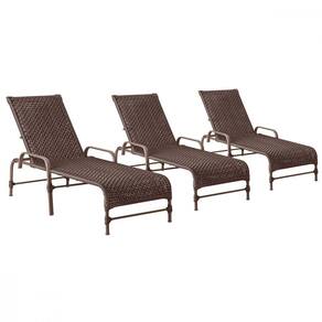 3 Espreguiçadeiras Reclinavel Catar Marrom Corda Nautica Marrom