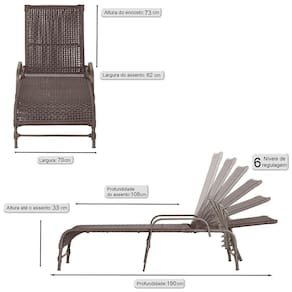 Conteudo da Embalagem: 02 Espreguicadeiras Reclinavel Catar Corda Nautica Trama