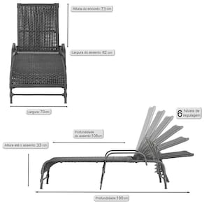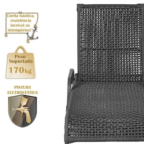 Conteudo da Embalagem: 03 Espreguicadeiras Reclinavel Catar Preto Corda Nautica Trama