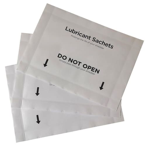 A folha lubrificante é indicada para a todos os modelos de trituradores. Limpa efetivamente limpa e lubrifica o triturador, melhora a eficiência e proporciona aos usuários maior durabilidade dos pentes fragmentadora. Ajuda a evitar atolamentos de papel e reduz o ruído operacional e a geração de poeira.