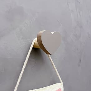 A face vai colada com super cola e acaba sendo apenas decorativa, pois é o suporte quem recebe o esforço, suportando até 5 Kg. Anúncio referênte à 3 unidades. Modelo: Coração Tamanho da face: 5,5cm X 6,0cm; Material: MDF laminado 15mm melamínico | borda cru Cor: Rosa, Azul, Branco e Cinza