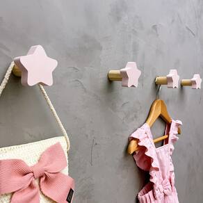 3 Ganchos de parede infantil decoração bebê estrela 3Esbb15 - Cor: Rosa
