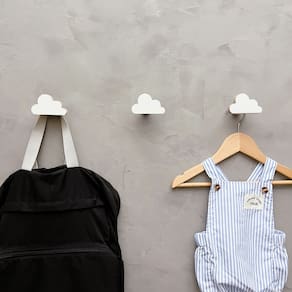 A face vai colada com super cola e acaba sendo apenas decorativa, pois é o suporte quem recebe o esforço, suportando até 5 Kg. Anúncio referênte à 3 unidades. Modelo: Nuvem Tamanho da face: 7,0cm X 4,5cm; Material: MDF laminado 15mm melamínico | borda pintada Cor: Rosa, Azul, Branco e Cinza