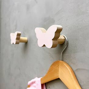 A face vai colada com super cola e acaba sendo apenas decorativa, pois é o suporte quem recebe o esforço, suportando até 5 Kg. Anúncio referênte à 3 unidades. Modelo: Borboleta Tamanho da face: 6,0cm X 4,0cm; Material: MDF laminado 15mm melamínico | borda cru Cor: Rosa, Azul, Branco e Cinza