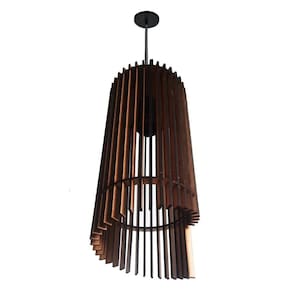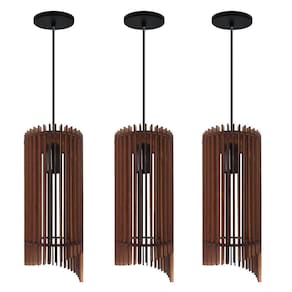 3 lustres pendentes rustico Chinês MDF Lustre Pendente Modelo: Pendente Chinês MDF Cor: Amadeirado Medidas Aproximadas: Altura: 28 cm Diâmetro: 12 cm Canópla de teto: 12 cm Soquete e-27 plástico Material: alumínio Marca R.R.J.V Negócios O pendente acompanha 2 Dois Metro de fio com altura ajustável.