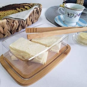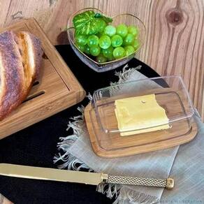 O kit de 3 manteigueiras de bambu com tampa plástica da Lyor oferece uma solução prática e elegante para servir manteiga em sua mesa posta. Cada manteigueira possui dimensões de 19cm (C) x 12,5cm (L) x 6cm (A), proporcionando assim, um espaço generoso para armazenar manteiga de forma conveniente. Feitas de bambu, uma material durável e charmoso, as manteigueiras irão deixar sua mesa ainda mais prática e bonita na hora do café. Suas tampas de plástico fornecem uma proteção eficaz, mantendo a manteiga fresca por muito tempo e protegendo contra impurezas. Com um design moderno e clean, essas manteigueiras complementam uma variedade de estilos de decoração de mesa, adicionando um toque de charme natural ao ambiente. O kit de 3 unidades é ideal para atender às necessidades de uma mesa maior ou para quem deseja ter até mesmo uma queijeira menor à disposição.