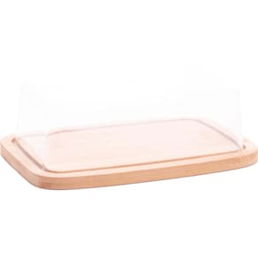 3 Manteigueiras de Bambu com Tampa Plástica Lyor 19x12,5x6cm Queijeira Mesa Posta.