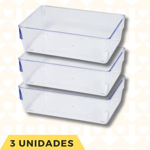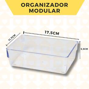 Esses organizadores são perfeitos para setorizar suas gavetas. Você compõe conforme os itens que serão organizados, além de serem empilháveis para otimizar o espaço utilizado e modulares para que você defina o tamanho e a quantidade que necessita para organizar melhor o seu ambiente. São ideais para temperos, materiais de escritório, gavetas e outros objetos pequenos. Em plástico de alta qualidade, transparente para facilitar a visualização dos objetos.