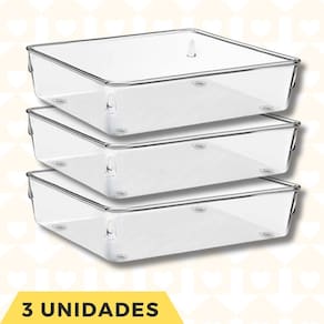 - Design transparente possui o visual mais clean; - Fabricado em material resistente e duradouro; - Ideal para organização de itens em geral;