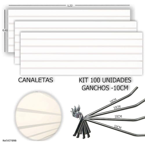 3 PAINEIS CANALETADOS 1,22 x 0,61+ 100 GANCHOS 10CM + CANALETA BRANCA
