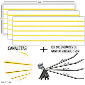 3 PAINEIS CANALETADOS 1,22 x 0,61+ 100 GANCHOS 15CM + CANALETA AMARELA