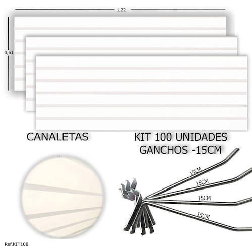 Kit contendo 3 (TRÊS) Paineis Canaletados Expositor em MDF, também conhecido como SlatWall. Ideal para todos os tipos de loja! + 100 unidades de ganchos ZINCADOS