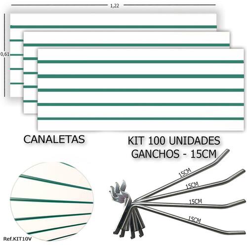 Kit contendo 3 (TRÊS) Paineis Canaletados Expositor em MDF, também conhecido como SlatWall. Ideal para todos os tipos de loja! + 100 unidades de ganchos ZINCADOS