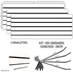 Kit contendo 3 (TRÊS) Paineis Canaletados Expositor em MDF, também conhecido como SlatWall. Ideal para todos os tipos de loja! + 100 unidades de ganchos ZINCADOS