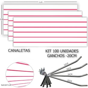 Kit contendo 3 (TRÊS) Paineis Canaletados Expositor em MDF, também conhecido como SlatWall. Ideal para todos os tipos de loja! + 100 unidades de ganchos ZINCADOS