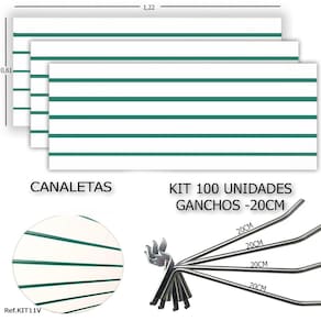 Kit contendo 3 (TRÊS) Paineis Canaletados Expositor em MDF, também conhecido como SlatWall. Ideal para todos os tipos de loja! + 100 unidades de ganchos ZINCADOS