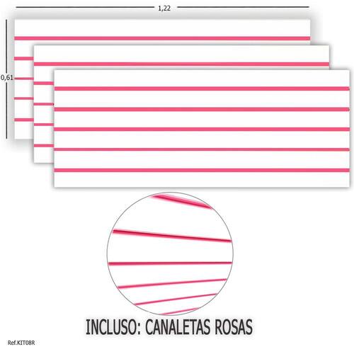 3 Paineis Canaletados - 1,22 X 0,61 + Canaleta RosaPainel Canaletado Expositor em MDF, também conhecido como SlatWall, é utilizado para exposição organizada de produtos dos mais diversos segmentos.O Kit com 3 unidades de painel na medida de 1,22 x 0,61 permite que o comprador faça a instalação da maneira que melhor o convém! Isso se deve pela medida que pode compor peças maiores, adequando assim da melhor maneira para o seu negócio. DESCRIÇÃO:3 unidades de painéis canaletados 1,22 X 0,61 + Canaletas Rosa ESPECIFICAÇÕES:Cor: Painel BrancoMaterial: MDFMedidas Aproximadas: Painel - Comprimento de 1,22 MT // Altura de 0,61 MT // Largura ou espessura : 18mm.INSTALAÇÃO / MONTAGEM:1. Montado no sistema de parafusos direto na parede. (Parafusos e buchas não inclusos) ITENS INCLUSOS:- 3 Paineis em MDF 1,22 x 0,61 MT (Parafusos e buchas NÃO inclusos)- Canaletas Rosa (Já seguem instaladas no painel)