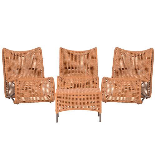 3 Poltronas e Mesa Texas em AlumínioTrama - Terracota | Marrom
