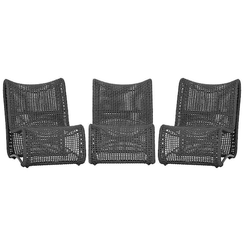 3 Poltronas Texas Em Alumínio Preto Corda Náutica Trama Preto