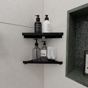 3 Porta Shampoo Sabonete Parede Suporte Canto Banheiro Preto