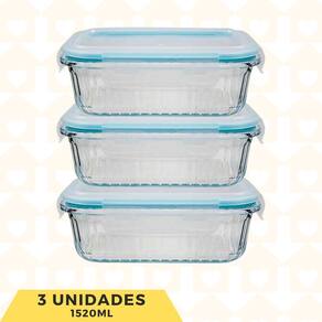 3 Pote Hermetico Grande 1520ml Tampa C/ Trava Total Canelado