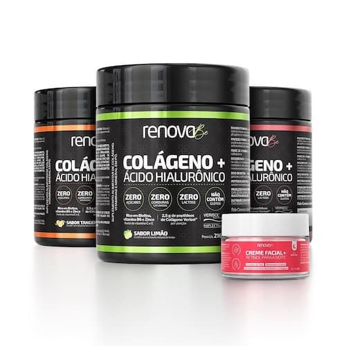 3 potes colágeno verisol renova be + 1 creme facial retinol Sabor: 1 limão + 1 tangerina + 1 pink lemonade Composto por 3 colágenos + creme retinol - colágeno 216g cada pote - creme 30g O colágeno renova be verisol com ácido hialurônico é um suplemento alimentar de alta qualidade, ideal para pessoas com mais de 19 anos. Com ingredientes como peptídeos bioativos do colágeno e ácido hialurônico, este produto é uma excelente opção para quem busca cuidar da saúde da pele, cabelos e unhas. Além disso, é livre de glúten e não contém lactose, sendo uma escolha segura para quem tem restrições alimentares. A embalagem contém 216g de pó, com uma porção de 12g que fornece nutrientes essenciais como fibras, proteínas, carboidratos e 50mg de ácido hialurônico. Recomendado para fins nutricionais, o colágeno renova be é uma opção prática e eficaz para incluir na rotina diária. Se você busca um suplemento de qualidade para cuidar da sua beleza de dentro para fora, experimente o colágeno renova be verisol com ácido hialurônico. Recomendação de uso - em um copo ou coqueteleira misture 1 colher de sopa aprox.12g em 150ml de água ou leite, consumir uma vez ao dia. Nossa recomendação é sempre usar água gelada. Somente o sabor chocolate contém lactose. Não contém glutén. Advertências: Este produto não é um . Não exceder a recomendação diária de consumo indicada na embalagem. Marca: Não Informado Ean: 7900441109863