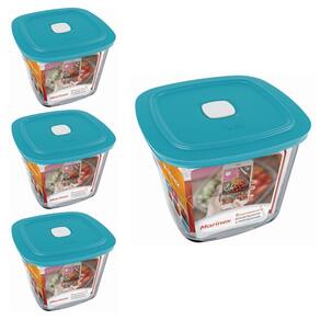 Pote De Vidro Quadrado Com Tampa Marinex 1L 3 unidades