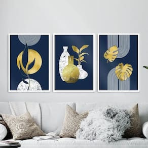 A marca se destaca pela qualidade de seus produtos, sempre buscando oferecer o melhor para seus clientes. Com um design moderno e sofisticado, o Kit 3 Quadros Abstratos Azul E Dourado Folhas 45X34Cm Vidro vai deixar seu ambiente ainda mais bonito e charmoso.