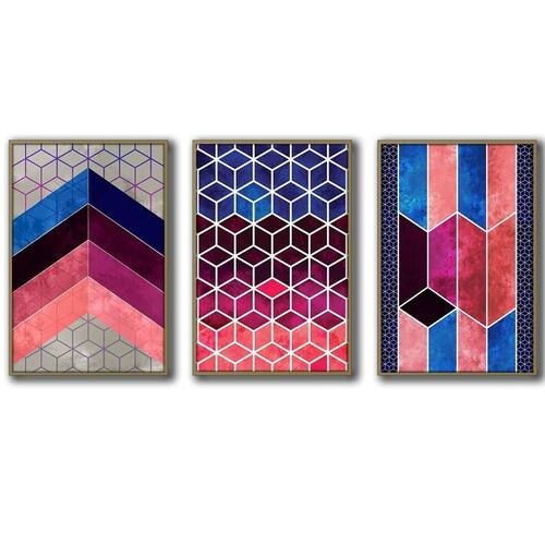 Quadros Decorativos Textura CX Alta 40x60 Chevron Cores 3 Un MEDIDAS - 3 Peças 40x60 cm. MATERIAL - MDF 3mm de espessura. MOLDURA CAIXA ALTA - 1,4cm de espessura e 2,9cm de largura, madeira maciça de reflorestamento, revestida com alta qualidade, 100% livre de imperfeições, cantos com acabamento excelente. TIPO DE IMPRESSÃO - Impressão em alta resolução em vinílico com textura refletiva livre de imperfeições. FINALIZAÇÂO E ACABAMENTO - O quadro decorativo é finalizado com grampos. OBSERVAÇÕES - Material de alta qualidade com textura e refletivo, que reflete a luz do ambiente. - Moldura sem vidro (Por que não vai com vidro? Como nossas imagens são impressas em material vinil brilho altamente durável, dispensa o uso do vidro. Fique tranquilo, sua imagem não corre o risco de desbotar); - Fabricação própria; - O produto pode ocorrer de ter uma leve diferença de tom na cor da que está na tela do seu computador ou celular. LIMPEZA APÓS FIXAÇÃO - A limpeza pode ser realizada apenas com um pano seco macio, se desejar pode ser úmido, porém sem conter álcool ou produtos químicos. Os quadros decorativos são muito utilizados por arquitetos e amantes da decoração. Quadros do mesmo tom, que possuam correlação e que "ornem" entre si podem ser utilizados juntos para dar uma personalização maior a um determinado ambiente. Composições podem ser utilizadas em salas, cozinhas, varandas, quartos ou qualquer ambiente que você queira deixar com a sua cara. Sendo assim a Arte na Arte criou pra você uma enorme variedade em Quadros Decorativos de cores e desenhos que seguem as últimas tendências de decoração. Transforme seu ambiente, decore sua sala, quarto, cozinha, escritório ou presenteie alguém especial com o Quadro Decorativo Arte na Arte. Esperamos que se sinta à vontade e encontre aqui o SEU estilo, e ao olhar pra o seu ambiente, seja ele qual for - possa dizer: "Agora meu ambiente está completo!" Tire todas suas dúvidas conosco, estamos sempre à disposição. Imagem ambiente fornecido por Freepik.