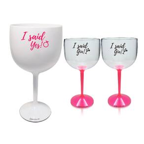 O Kit exclusivo com 3 Taças Gin da KrystalON Copos Personalizada Despedida de Solteira de 550ml em Acrílico Poliestireno Super Resistente foi especialmente desenvolvido para o consumo de Gin, Vinho e outras bebidas. Perfeito para você comemorar sua despedida em grande estilo. Especificações: Capacidade: 550 ml Dimensões: Altura: 20 cm Diâmetro: 12 cm Quantidade: 3 Peças Cor: Branca e Base Rosa Material: Acrílico Poliestireno