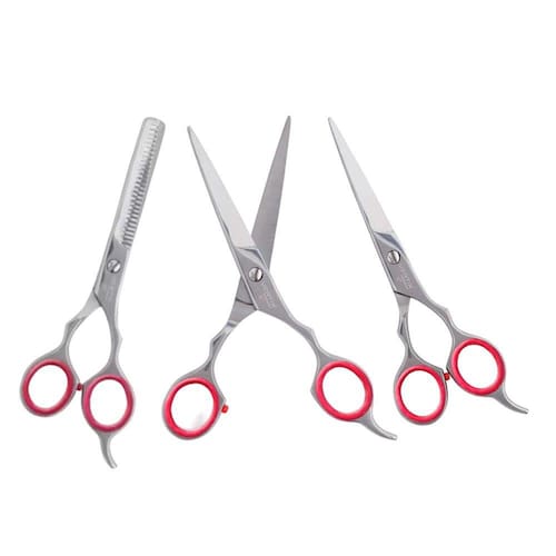 KIT 3 TESOURAS PROFISSIONAL RED CIRCLE 6" DESBASTE DUPLO + FIO NAVALHA + FIO LASER VERTIX