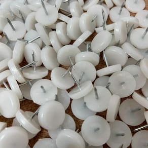 Kit com 30 Sapatas Prego 18x4,5mm tamanho do produto após instalação Preserva a superfície de apoio contra arranhões e outros danos mecânicos causados por esforços de movimentação. Seu sistema de fixação garante maior segurança e durabilidade.Ideal para mesas, cadeiras, poltronas e móveis-Cor: Branco-Protegem pisos e outras superfícies de riscos e danos causados pela movimentação de móveis e outros objetos-Dimensões:Altura da base: 4,5mmAltura total: 20mmAltura do prego: 15,5mmLargura: 18mm Marca: Component Ean: 1194510001004