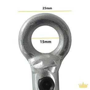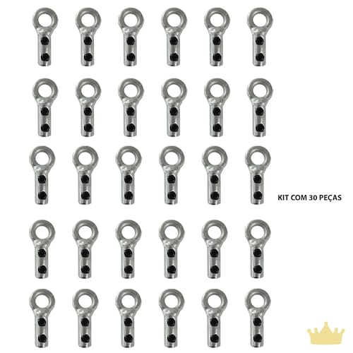 Especificações Técnicas Terminal Argola - Material: Aço Carbono - Diâmetro do encaixe maior: 1,5 cm - Comprimento total: 3,7 cm aproximadamente - Peso do produto (unidade): 64 gramas - Capacidade: 120 kg
