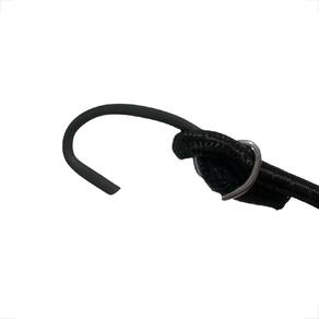 Cordão elástico com ganchos de ferro. Ganchos em ferro. Comprimento: 1,5 METROS Não esticar o cordão acima de 70% do seu comprimento inicial.
