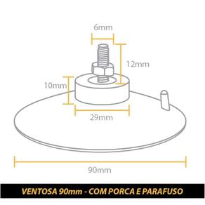 Ventosa fabricada em PVC Preto Para sua remoção, basta puxá-la pela aba lateral. Com parafuso e porca. Ideal para martelinho de ouro, displays para retirada de tela de TV, utilidades domésticas diversas fixar em locais lisos como vidro, azulejo . Marca: H Plásticos