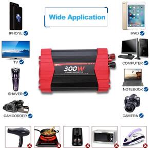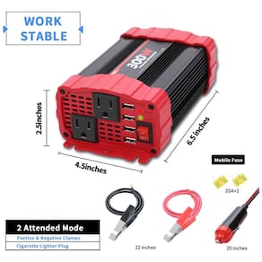 Vantagem BYGD inversor de energia para carro premium de 300 W com 2 tomadas CA e 4 portas USB de carregamento rápido de 3,1A. Fornece velocidade máxima e energia contínua estável para dispositivos de carregamento, ele resolverá o problema de energia para sua longa jornada, camping, entretenimento automotivo e emergência . 2 maneiras de conectar plugue de isqueiro equipado com inversor e cabos de fixação da bateria. O soquete de isqueiro de carro geral suporta pico de 150W, mais alto do que use as pinças para conectar a bateria diretamente. Portátil e estável Tomada de carro 6.5x4.5x2.5inches, peso leve 1.2 lb 600g. Feito de material ABS de resistência ao fogo, não vai incomodá lo na estrada, fusível embutido para proteger o seu dispositivo com proteção total contra curto circuito, baixa tensão, sobrecarga, sobretensão, sobrecarga, sobrecarga proteção de temperatura. Ampla aplicação um bom inversor de energia oferece grande comodidade em suas viagens, qualquer pessoa em movimento em um carro, caminhão, RV ou barco a motor pode tirar proveito de um inversor de energia. Carregamento adequado para seu smartphone, câmera, Ipad, notebook , PSP e outros dispositivos Marca: Não Informado